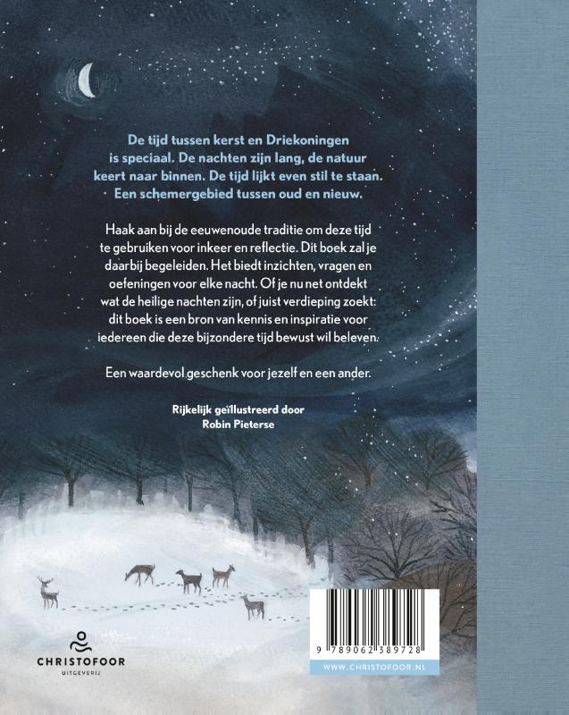 De tijd tussen kerst en Driekoningen is speciaal. De nachten zijn lang, de natuur keert naar binnen. De tijd lijkt even stil te staan. Een schemergebied tussen oud en nieuw. Haak aan bij de eeuwenoude traditie om deze tijd te gebruiken voor inkeer en reflectie. Dit boek zal je daarbij begeleiden. Het biedt inzichten, vragen en oefeningen voor elke nacht. Of je nu net ontdekt wat de heilige nachten zijn, of juist verdieping zoekt: dit boek is een bron van kennis en inspiratie voor iedereen die deze bijzondere tijd bewust wil beleven. Een waardevol geschenk voor jezelf en een ander.