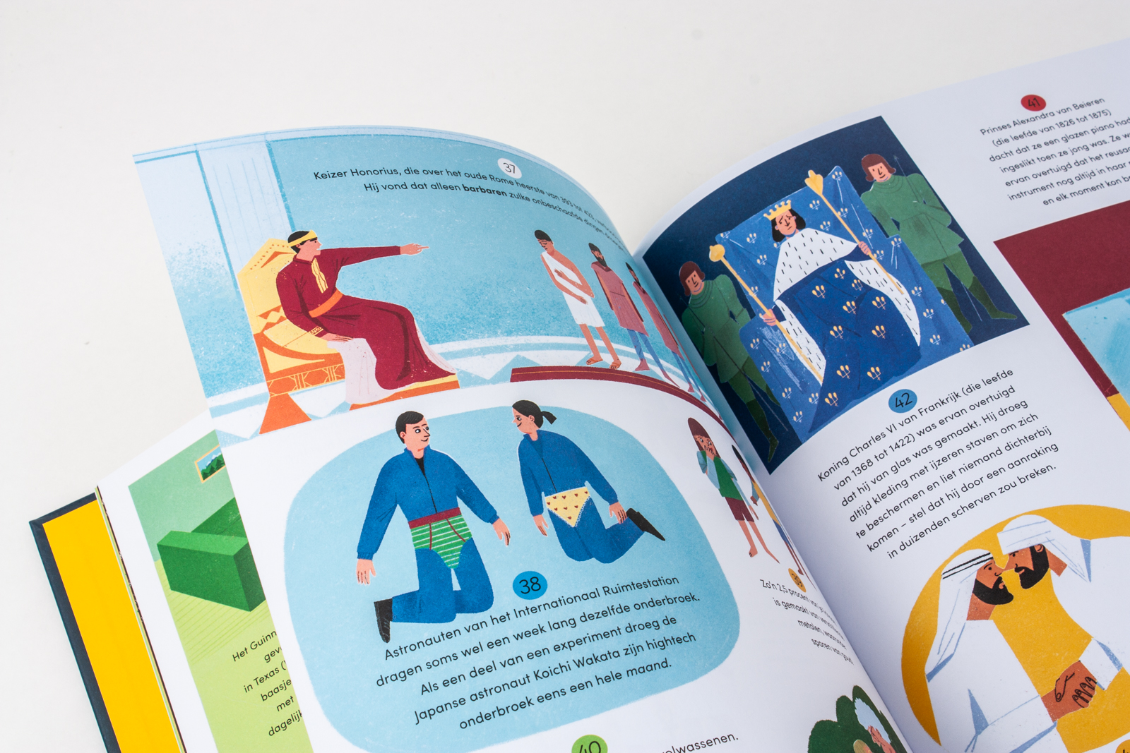 Waar regent het diamanten?Hoe ruikt de ruimte?En wie was William Johnson Hippopotamus precies? Ontdek élke dag van het jaar een geweldig weetje, van bomen die in glas veranderen en de langste worst ter wereld tot dromedarissen die het gras maaien en mensen die licht geven in het donker! Dit prachtig geïllustreerde boek voor op je nachtkastje trakteert je op 365 ongelooflijke feiten, anekdotes en waargebeurde verhalen. Dommel in en droom van al die avonturen, om bij het wakker worden er zelf een te beleven.