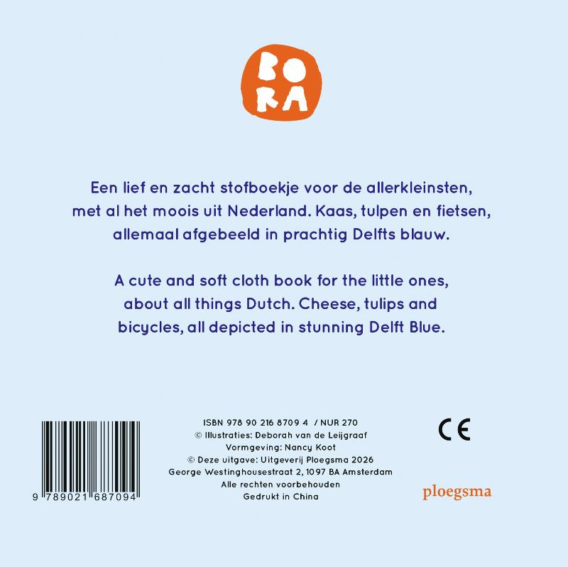 BORA Holland is het perfecte kraamcadeautje: een lekker zacht stofboekje met bekende Nederlandse dingen in Delfts blauw, mooi verpakt in een kartonnen doosje. Molens, tulpen en klompen; Hollandser kan bijna niet! In dit BORA-stofboekje maken de allerkleinsten kennis met typisch Nederlandse dingen, getekend in Delfts blauwe stijl. En zie jij het muisje dat op elke pagina verstopt zit?