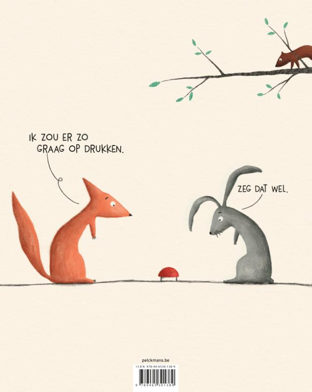 Wie durft te drukken? Wanneer de dieren in het bos een grote rode knop tegenkomen, weten ze niet wat gedaan. Vos, Eekhoorn en Konijn willen er heel graag op drukken, maar Beer, Uil en Kip zijn resoluut tegen. Wat als een druk op de knop in één klap hun bos vernietigt? Maar misschien tovert de knop net prachtige dingen tevoorschijn? Het is maar een knop – al lijkt hem indrukken wel een tikje te spannend… Een humoristisch prentenboek voor kleuters die maar al te graag op knoppen drukken – met een einde dat jong en oud zal charmeren.