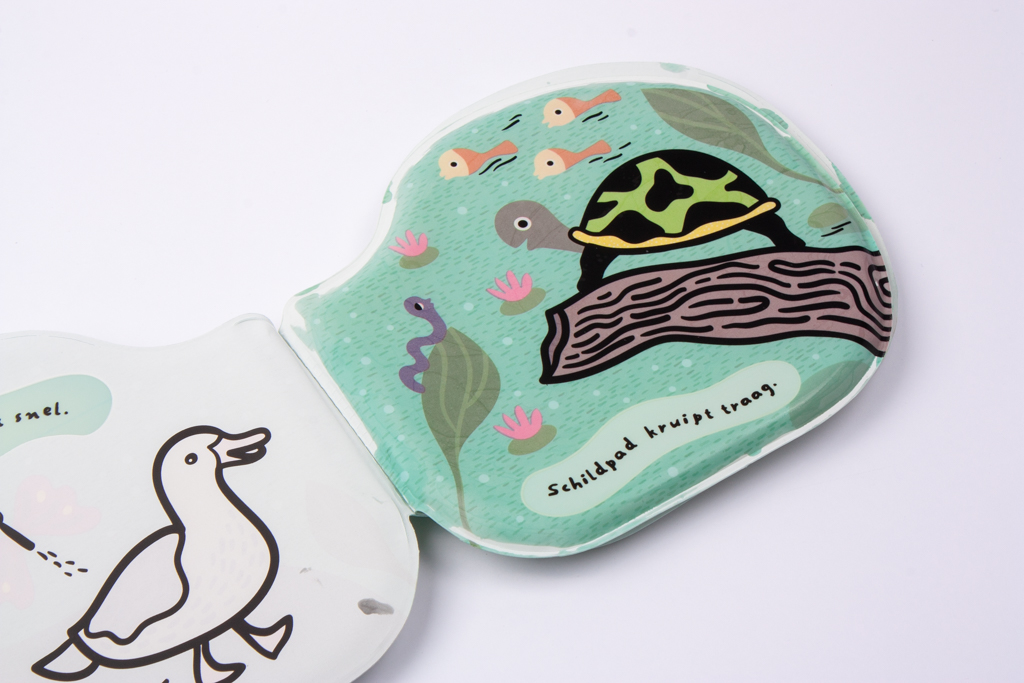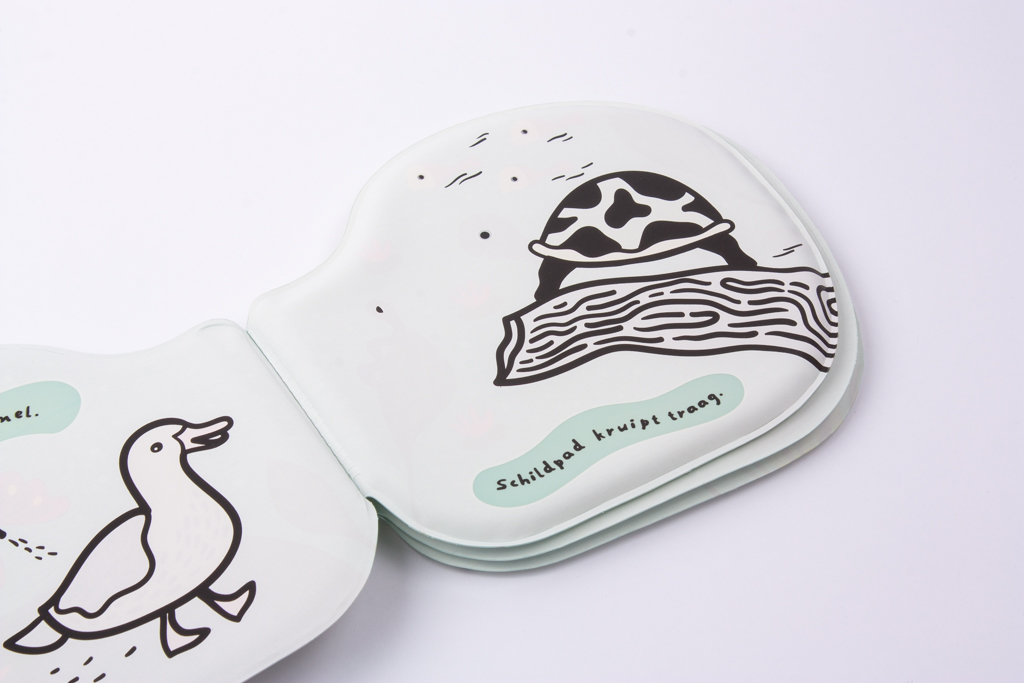 Baby’s kijken gefascineerd naar dit magische badboekje.De zwart-wit illustraties komen tot leven in contact met water.Eend en zijn vriendjes komen in mooie kleuren tevoorschijn. Meer