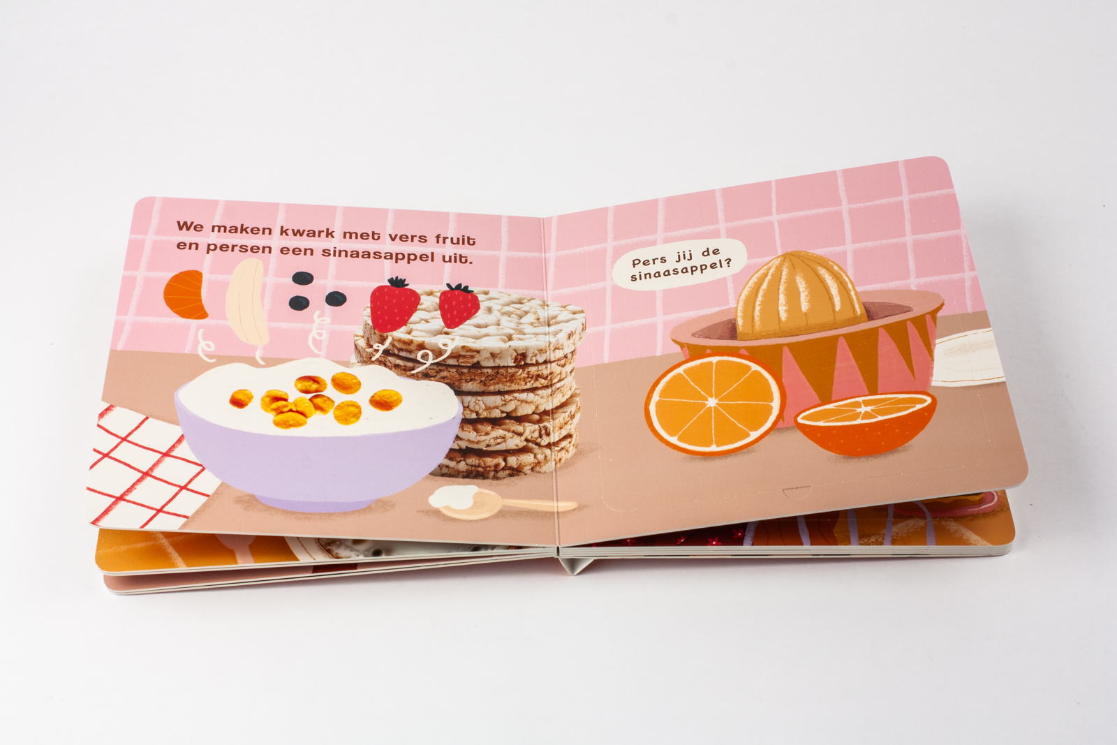 Tijd voor een heerlijk, uitgebreid ontbijt!Iedereen heeft honger voor twee, dus help snel even mee.Pel een eitje, neem een hapje van het brood en ontdek wat voor lekkers er nog meer op tafel staat.Een vrolijk, interactief kartonboek mét flapjes om keer op keer van te smullen! Meer