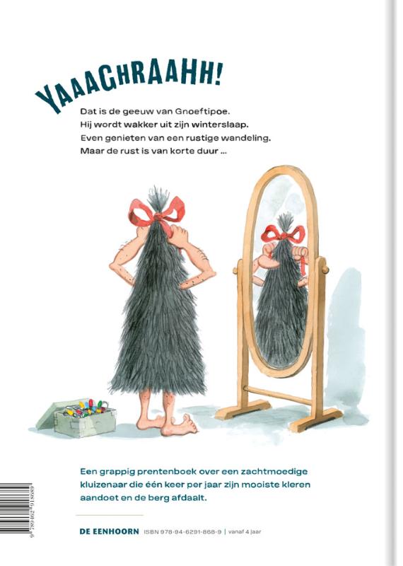 Gnoeftipoe wordt wakker uit zijn winterslaap. Eindelijk weer tijd om rustig te wandelen, te genieten van het mooie uitzicht en te zwaaien naar toevallige voorbijgangers - al merken die hem vaak niet eens op. En als ze hem tóch zien, maken ze zich meestal snel uit de voeten … Wanneer de sneeuwvlokjes beginnen te vallen, is het tijd voor de grote tocht. Gnoeftipoe doet dan zijn mooiste kleren aan en daalt de berg af. Lopen de mensen nog steeds weg?