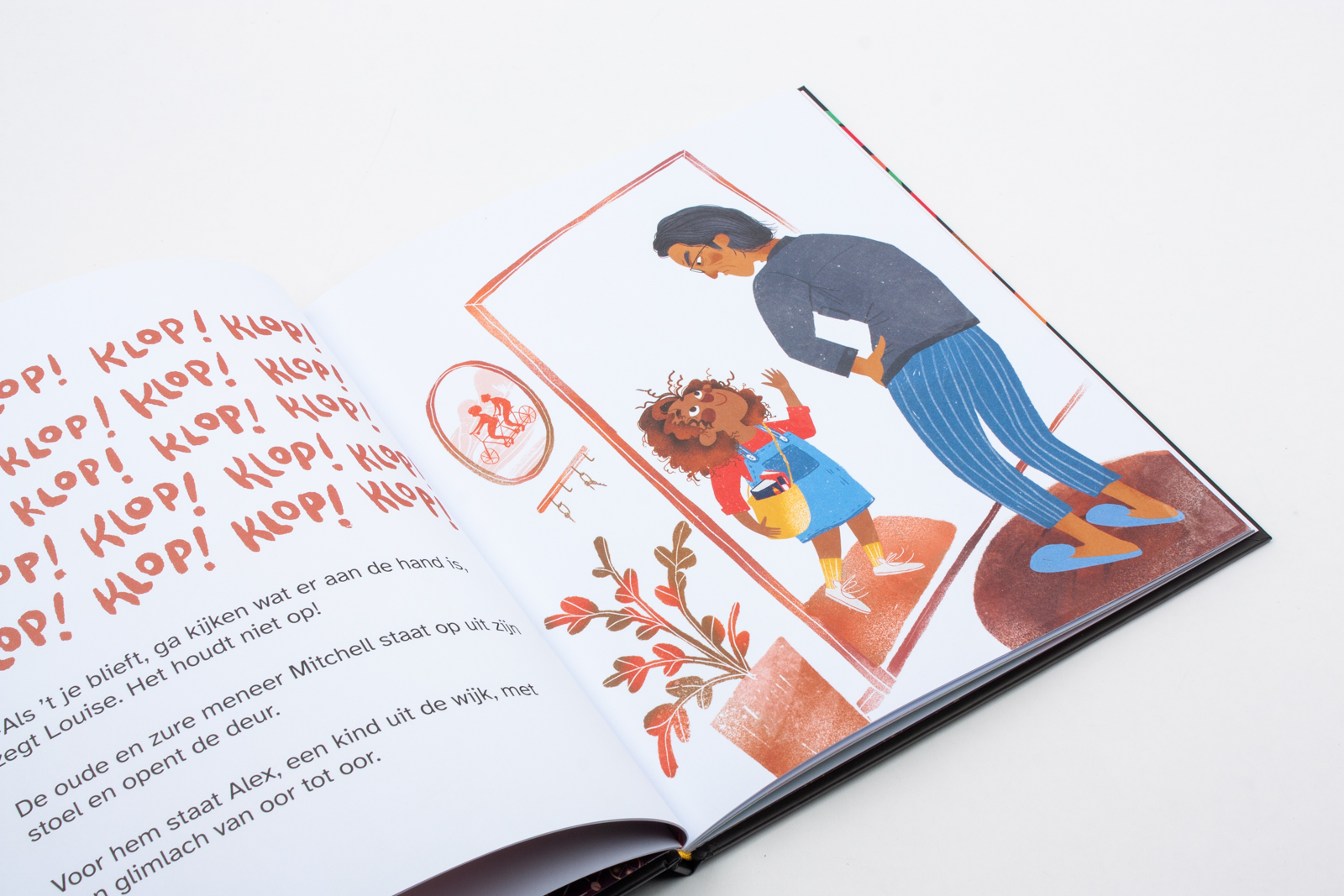 Elke ochtend kijken de oude en zure meneer Mitchell en Louise, zijn echtgenote-die-niet- zo-zuur-is, naar de televisie en drinken zij een stevige kop koffie. Zonder melk, zonder suiker, alleen een sterke zwarte kop koffie. Alle buurtbewoners weten dat je hen niet moet storen. Alleen met elkaar, zo genieten zij van het leven... tot op een dag... KLOP! KLOP! KLOP!
