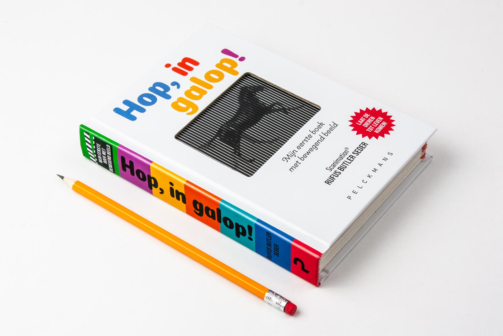 Beleef de magie van beweging in een boek! Hop, in galop! van Rufus Butler Seder is een uniek kartonboek dat dieren tot leven wekt. Dankzij de verbluffende Scanimation-techniek komen de dieren echt tot leven; een paard lijkt echt te galopperen, een hond te rennen en een adelaar te zweven door de lucht – gewoon door de bladzijde om te slaan. De illustraties worden aangevuld met een tekst op rijm. Het is onmogelijk om de pagina niet om te slaan, en nog eens, en nog eens, en nog eens.