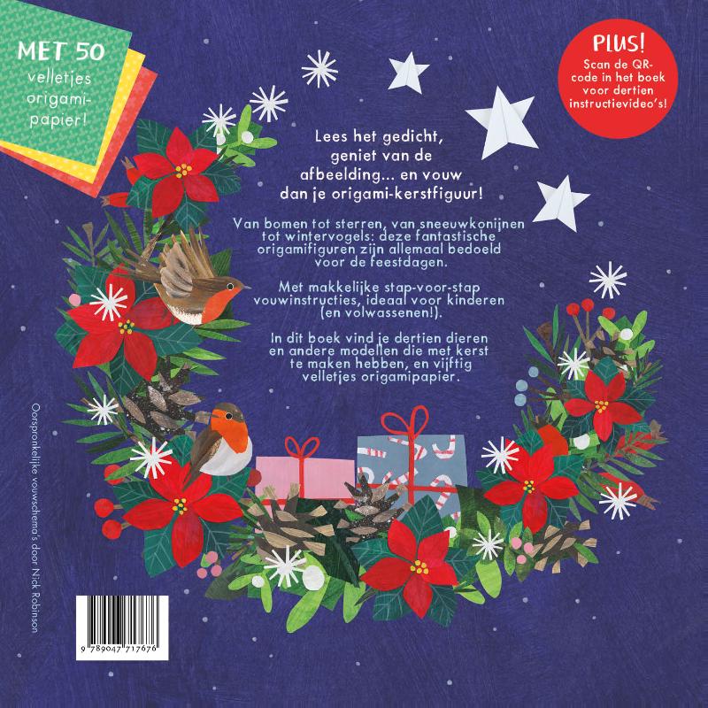 Met het nieuwe boek in onze origami-serie maak je de mooiste versieringen voor Kerstmis (en de rest van het jaar).Van pinguïns tot sneeuwkonijnen en van sterren tot cadeaudoosjes – al deze prachtige origamifiguren zijn geïnspireerd op de winter en de kerstmaand.De makkelijke stap-voor-stap vouwinstructies zijn ideaal voor kinderen (en volwassenen) en worden voorafgegaan door een bijpassend gedichtje.Met dertien vrolijke versierselen om te vouwen, vijftig velletjes origamipapier en een QR-code naar de instructievideo’s.
