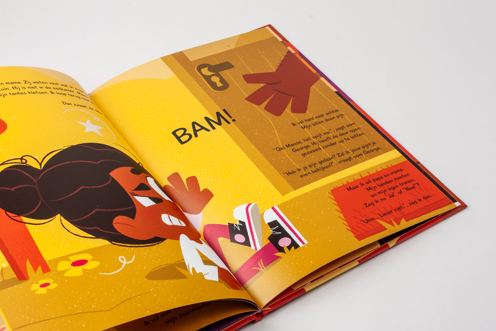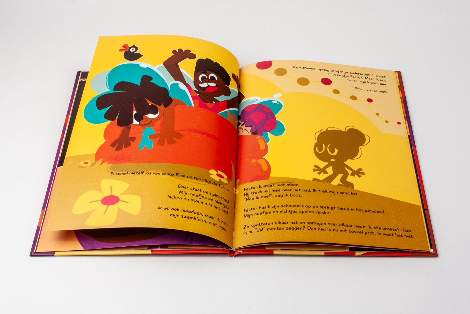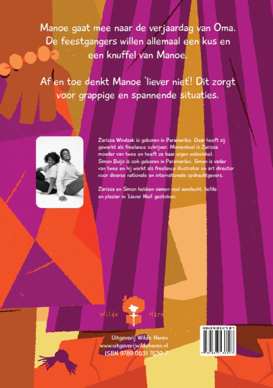 Manoe gaat mee naar de verjaardag van Oma. De feestgangers willen allemaal een kus en een knuffel van Manoe. Af en toe denkt Manoe 'liever niet'! Dit zorgt voor grappige en spannende situaties. Meer
