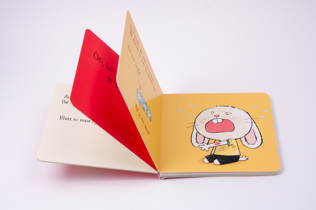 'Nog even een kusje erop' is een lief peuterboek van de Duitse kinderboekenschrijver Jorg Mühle. Dit boekje over vallen en opstaan is ideaal voor de jonge iPad-generatie. Klein Konijn is gevallen, en dat doet pijn. Hij heeft zelfs bloed op zijn arm! Daar moet iets aan gedaan worden. Een pleister op de wond helpt een beetje, maar hij is nog steeds verdrietig. Help jij hem weer op de been? In dit lieve voorleesboekje wordt vallen en opstaan een interactief spel. Peuters worden aangemoedigd Klein Konijn te troosten en weer op de been te helpen. Een pleister, een kusje erop, traantjes drogen, neusje snuiten... Nog even het vuil van zijn kleren slaan en dan kan Klein Konijn weer verdergaan! Tappen en swipen? De boekjes in de populaire serie over Klein Konijn zijn extra leuk voor boekje voor kinderen die graag op de iPad spelen: net als op de tablet kun je 'tappen' en 'swipen', maar dan in een papieren boek!