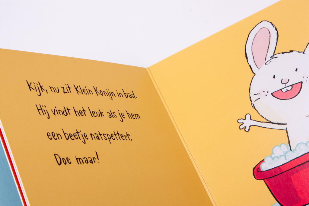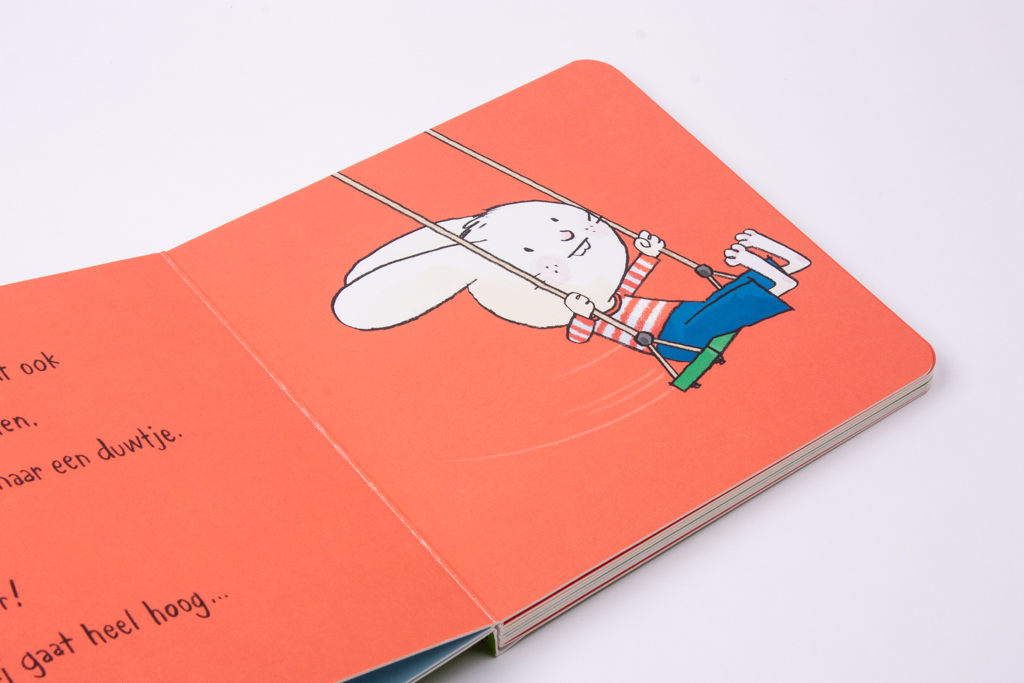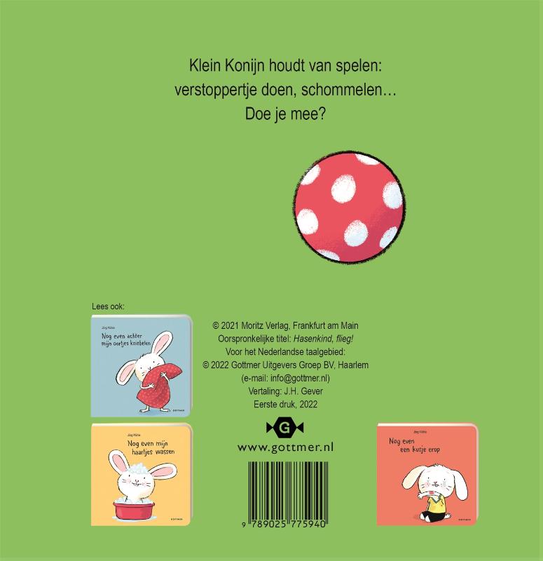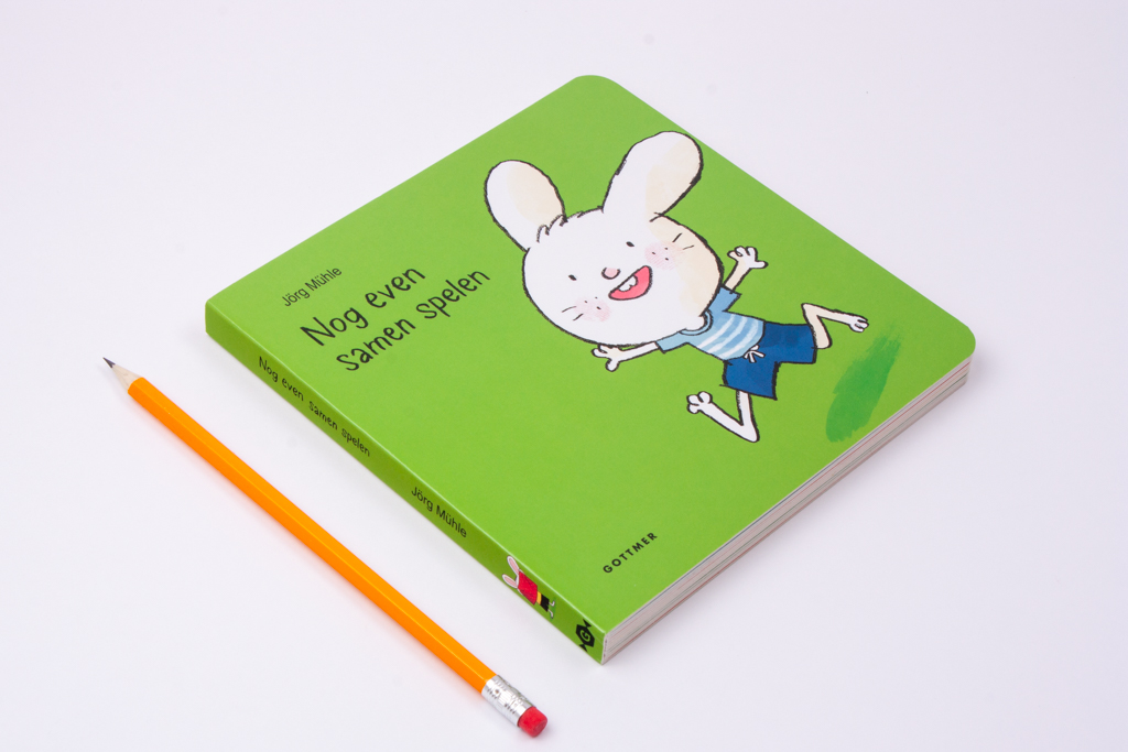 In 'Nog even samen spelen', een lief prentenboekje van Jorg Mühle, wordt voorlezen een interactief spel. Peuters laten zelf het konijntje omhoogvliegen op de schommel en spelen verstoppertje met hem.'Nog even achter mijn oortjes kriebelen', nog zo'n leuk boekje van Jorg Mühle, werd door BoekStart genomineerd als Babyboekje van het Jaar 2016. De boekjes in de populaire serie over Klein Konijn zijn extra leuk voor kinderen die graag op de iPad spelen: net als op de tablet kun je 'tappen' en 'swipen', maar dan in een papieren boek!