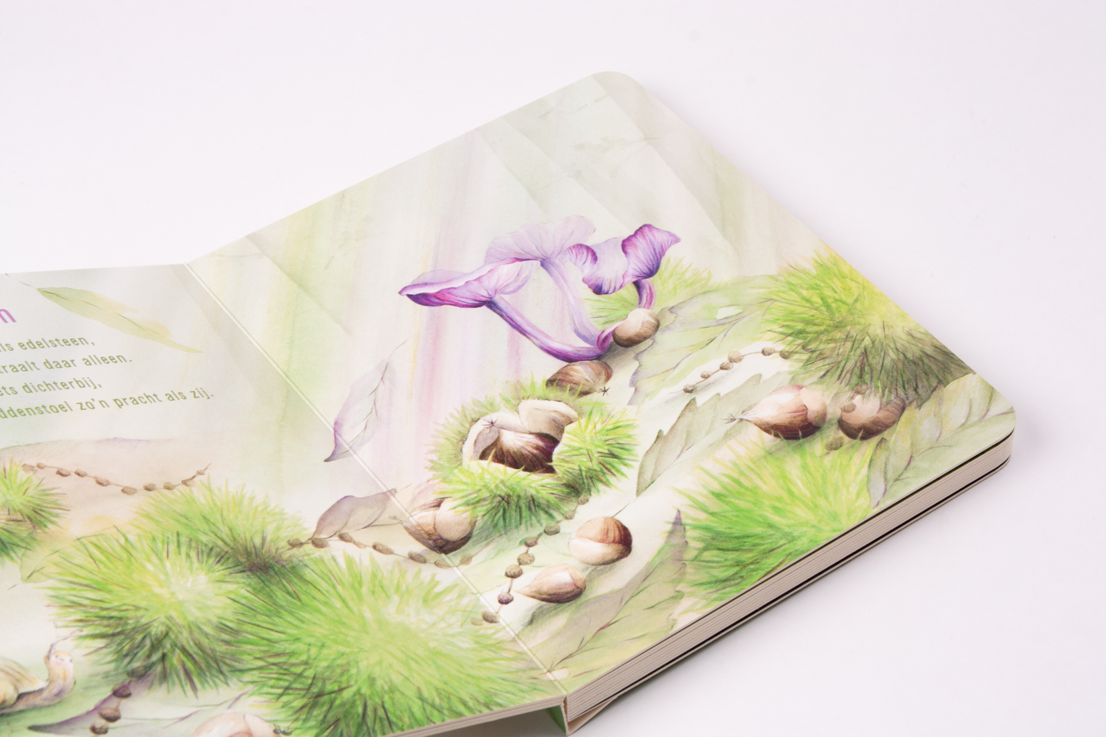Paddenstoelenvriendjes is een eerbetoon aan de natuur en al haar diversiteit voor de kleinsten. Aan de hand van korte rijmpjes en schitterende waterverfillustraties ontmoet je de meest uiteenlopende paddenstoelen in bijzondere kleuren en vormen: van de bekende vliegenzwam tot het elfenbankje. Allemaal zo uniek en eigen dat je er bijna karakters in zou zien… Na het lezen van dit boek zul je ze ineens overal herkennen!Op iedere spread reizen er een slak en een spinnetje mee. Kun jij ze allemaal vinden?
