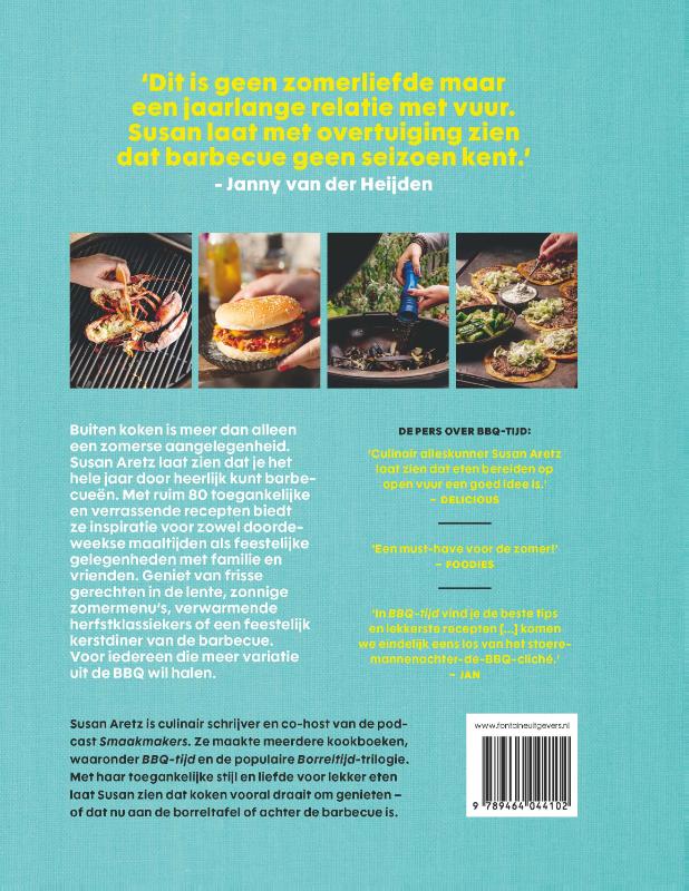 Het hele jaar barbecueën, van makkelijk en snel tot feestdinerDat je het hele jaar door – zelfs in een wisselvallig klimaat – heerlijk kunt barbecueën laat BBQ Queen Susan Aretz zien in haar nieuwste barbecueboek. Met ruim 80 toegankelijke en verrassende recepten biedt ze inspiratie voor zowel doordeweekse maaltijden als feestelijke gelegenheden met familie en vrienden. Geniet van frisse gerechten in de lente, zonnige zomermenu’s, verwarmende herfstklassiekers of een feestelijk kerstdiner van de barbecue. Voor iedereen die meer variatie uit de BBQ wil halen.• Barbecuerecepten voor elke dag van het jaar• Toegankelijke en inspirerende receptuur• Van complete, snelle maaltijd tot uitbundig feestdiner• Inclusief bijgerechten, drankjes en ander lekkers365 dagen BBQ is gemaakt door een all female team van auteur, vormgever en fotografen. Samen geven zij een frisse, smaakvolle en vrolijke draai aan alle seizoenen van de barbecuewereld.
