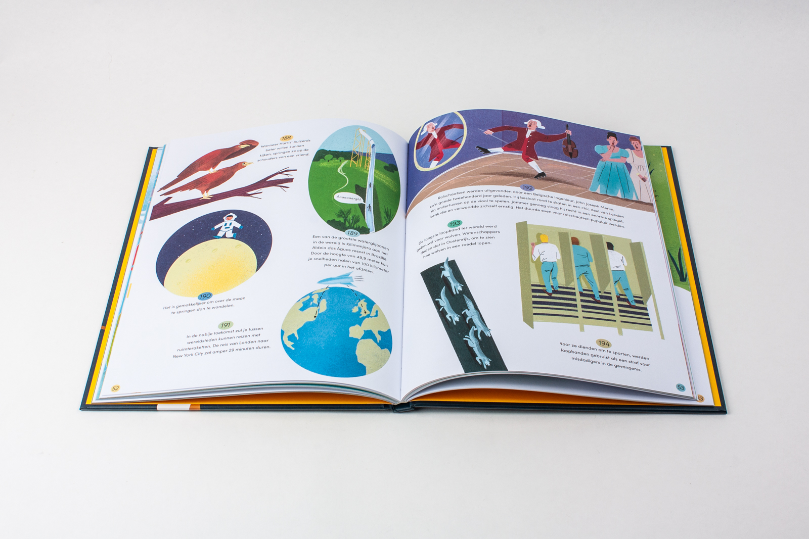 Waar regent het diamanten?Hoe ruikt de ruimte?En wie was William Johnson Hippopotamus precies? Ontdek élke dag van het jaar een geweldig weetje, van bomen die in glas veranderen en de langste worst ter wereld tot dromedarissen die het gras maaien en mensen die licht geven in het donker! Dit prachtig geïllustreerde boek voor op je nachtkastje trakteert je op 365 ongelooflijke feiten, anekdotes en waargebeurde verhalen. Dommel in en droom van al die avonturen, om bij het wakker worden er zelf een te beleven.