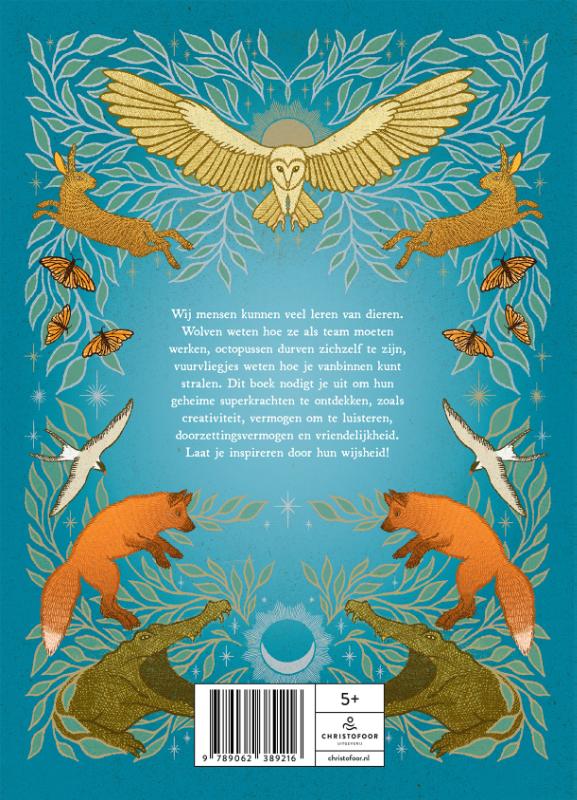 Wij mensen kunnen veel leren van dieren. Wolven weten hoe ze als team moeten werken, octopussen durven zichzelf te zijn, vuurvliegjes weten hoe je van binnen kunt stralen. Dit boek nodigt je uit om hun geheime superkrachten te ontdekken, zoals creativiteit, vermogen om te luisteren, doorzettingsvermogen en vriendelijkheid. Laat je inspireren door hun wijsheid!