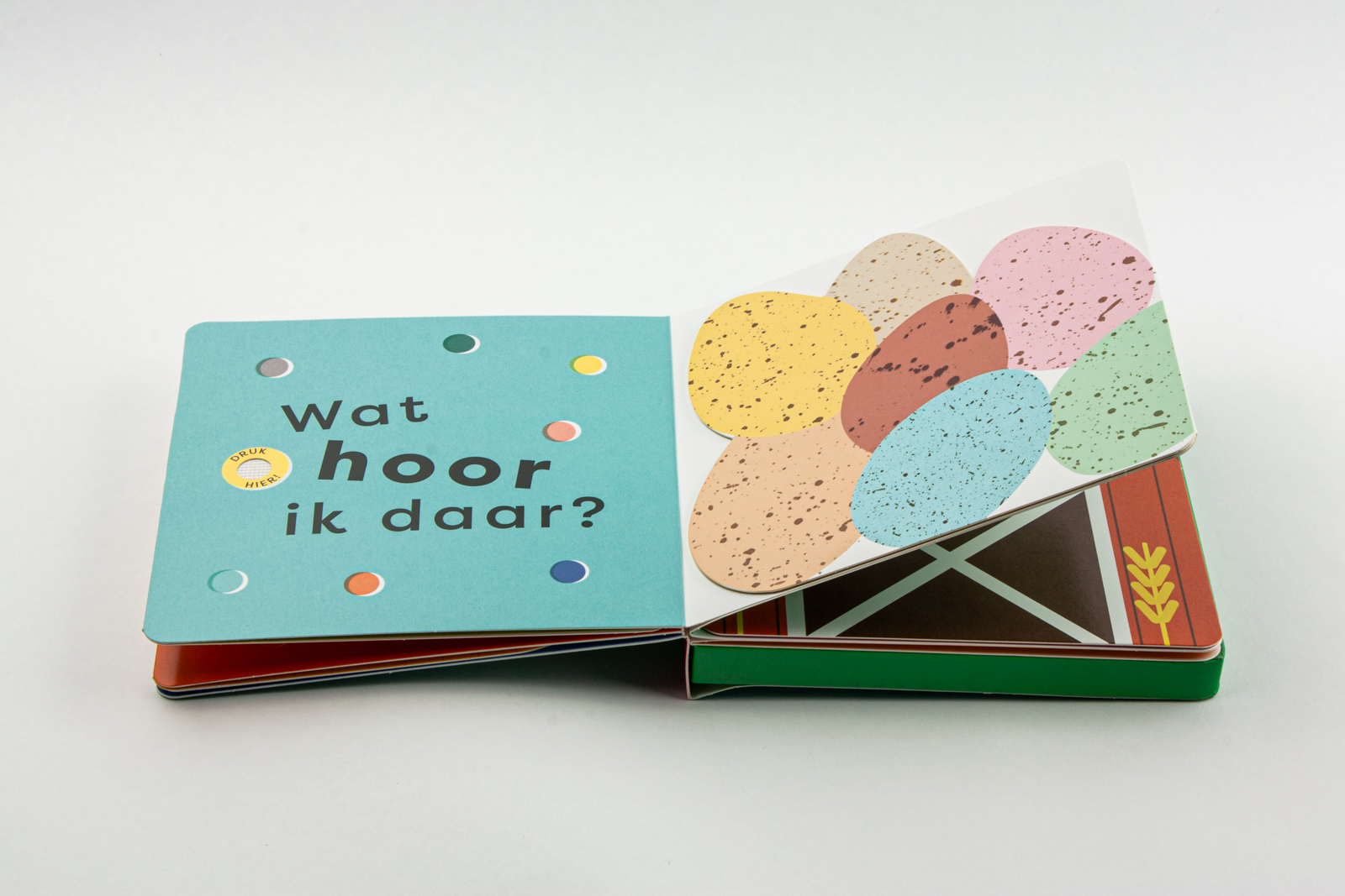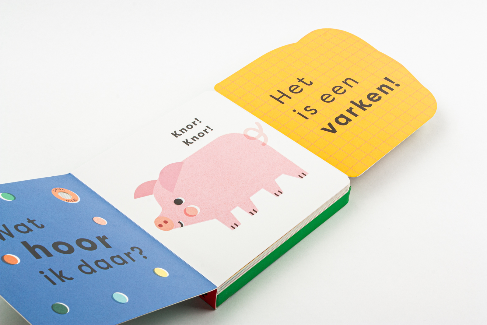 Het leukste geluidenboekje met boerderijdieren voor kindjes vanaf 1 jaar! 'Wat hoor ik daar? - Boe!' is een innovatief en interactief flapjesboek dat perfect is voor nieuwsgierige peuters. In dit kartonboekje met het thema boerderij hoor je vijf verschillende dierengeluiden. Luister samen naar het geluid, raad welk dier zich verstopt en til het flapje op om te zien welk boerderijdier het is! Was het een varken, een schaap, een kip of een koe? Als verrassing aan het einde: een geluidje en een spiegel waarin je kindje zichzelf kan zien!Pui Lee is een freelance illustrator en grafisch ontwerper uit Londen. Met een speelse en grafische benadering maakt ze gebruik van eenvoudige vormen, structuren en kleuren. Ze illustreert graag alledaagse objecten en experimenteert met texturen en patronen om een verhaal te vertellen.'Wat hoor ik daar? - Boe!' is zonder twijfel het leukste geluidenboekje om spelenderwijs kennis te maken met dieren en geluiden op de boerderij! Geschikt voor kindjes vanaf 12 maanden. Ook verkrijgbaar in de serie Wat hoor ik daar? is 'Wat hoor ik daar? - Miauw!', een geluidenboek over huisdieren.