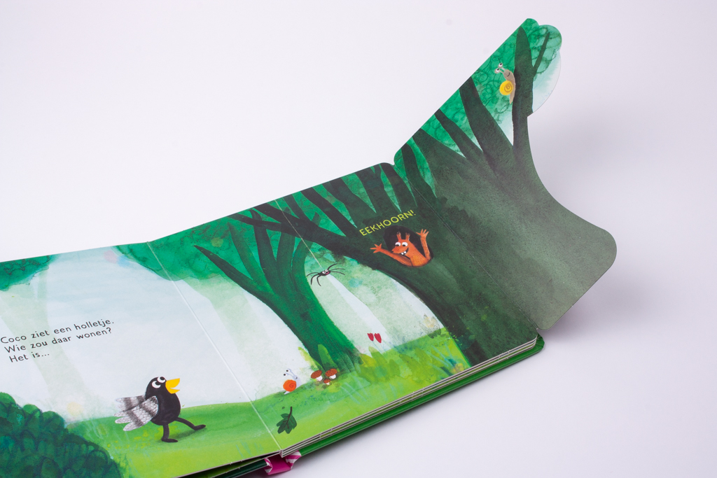 'Coco in het bos' is een stevig kartonboekje met flappen voor de allerkleinste fans van Coco, het eigenwijze vogeltje uit het bekroonde prentenboek 'Coco kan het!' van Loes Riphagen.In dit interactieve flapjesboek gaat Coco op avontuur in het bos. Wat is daar allemaal te ontdekken tussen de bladeren, in de bomen of achter de bloemen? Kleintjes helpen Coco zoeken door grote flappen open te klappen - naar boven, opzij en naar beneden.'Coco in het bos' is perfect voor peuters vanaf 1 jaar: het handzame formaat, de stevige kartonpagina's en de eenvoudige, lieve tekst maken dit boekje met flappen ideaal voor kleine handjes. Een vrolijk en leerzaam Coco-boekje dat nieuwsgierige peuters uitnodigt om te kijken, ontdekken en steeds opnieuw te lezen.Ook verkrijgbaar in deze serie peuterboekjes van Coco: 'Coco in de wei'.