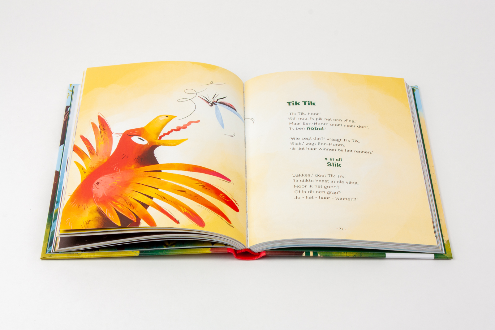 Een neushoorn weet niet wie ze eigenlijk is. Als ze Os tegenkomt, is hij heel verbaasd: ‘Een dier als jij zag ik nog niet. Jij bent een een-hoorn!’ Fijn, denkt de neushoorn, nu heb ik een naam. Een-hoorn. Ze gaat op stap en zegt haar naam tegen elk dier dat ze tegenkomt. Maar volgens Slak kan ze geen eenhoorn zijn, want ze is niet snel genoeg. Tiktik denkt dat ze niet groots genoeg is, Wild Zwijn is zeker dat ze wit zou moeten zijn en Aap is ervan overtuigd dat eenhoorns kunnen vliegen. Dan duikt er een dier op dat het antwoord heeft op al hun vragen … Leesgroeiboek voor groep 3 en 4 (AVI M3, E3 en M4)