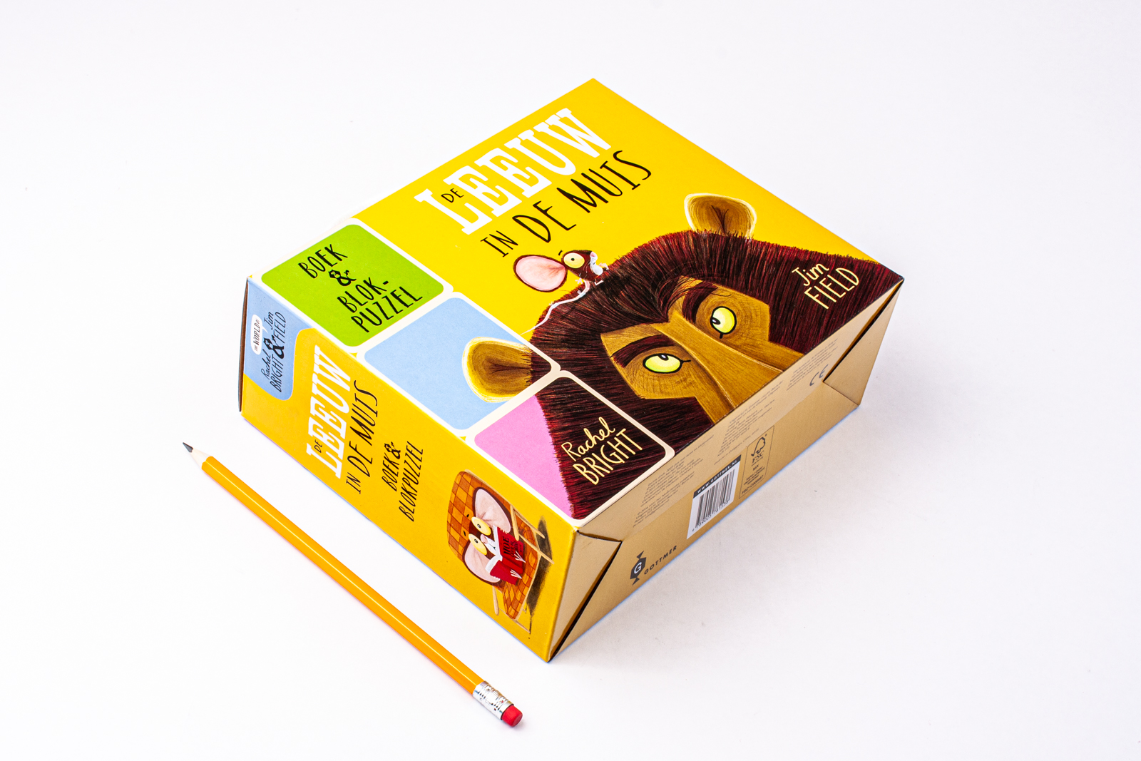 Dit cadeaudoosje bevat een gebonden prentenboekje en blokpuzzel van het populaire prentenboek 'De leeuw in de muis' van Rachel Bright en Jim Field. Lees samen het prachtige verhaal met een mooie boodschap over moed en vriendschap. En na het voorlezen? Dan kan er fijn gespeeld worden met de bijbehorende blokpuzzel. Draai de kubus om en puzzel een van de zes leuke illustraties. Geschikt voor kinderen vanaf 3 jaar.Een klein muisje voelt zich door zijn formaat niet gezien en onbegrepen en kijkt (letterlijk) enorm op tegen de leeuw, die met zijn luide gebrul door iedereen gehoord wordt. Het muisje besluit, ondanks zijn angst, in de leer te gaan bij de leeuw. Maar als hij eenmaal neus-aan-neus staat met het machtigste roofdier op aarde, blijkt dat er in die stoere leeuw ook een bang muisje verstopt zit. Schrijver Rachel Bright en illustrator Jim Field zijn het duo achter populaire prentenboeken als 'Lars de dwarse dromedaris', 'Twee vechtende eekhoorntjes' en 'Laat maar los, Koala'. Al hun dierenverhalen zijn prachtig om te zien, bevatten een wijze les en zijn heerlijk op rijm vertaald door Bette Westera.