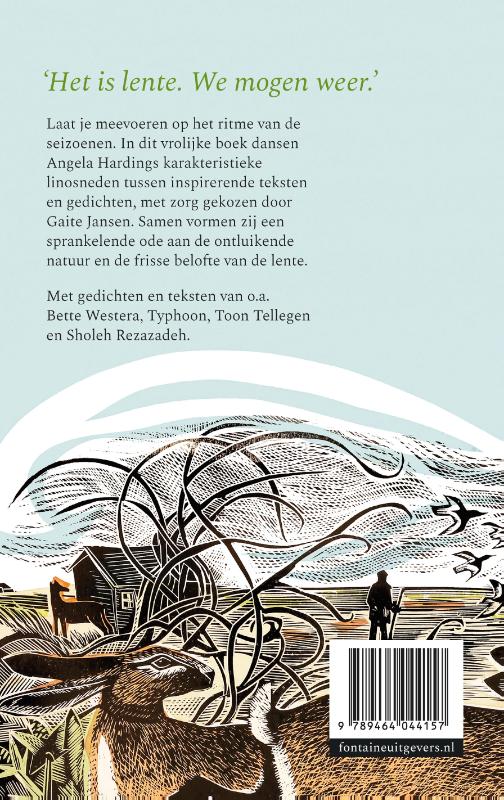 De lente in woord en beeld: niet eerder was het voorjaar zo mooi!Met speciaal voor de Nederlandstalige editie door Gaite Jansen geselecteerde inspirerende teksten en gedichtenDankzij onder meer haar inmiddels iconische cover voor Het zoutpad is Angela Hardings werk wereldwijd bekend en geliefd. In De lente bloeit worden Hardings kenmerkende linosnedes gecombineerd met inspirerende teksten die de lezer meenemen in de verstilde pracht van het voorjaar. Elke pagina ademt verwondering en rust, perfect voor wie de natuur liefheeft of op zoek is naar een moment van reflectie. Fans van James Norbury zullen zich meteen thuis voelen: dezelfde zachtheid en warmte maar dan met Hardings unieke signatuur en rijke visuele wereld. Met sfeervolle illustraties en een poëtische blik op de natuur is dit boek een prachtig cadeau voor elke liefhebber van het buitenleven.