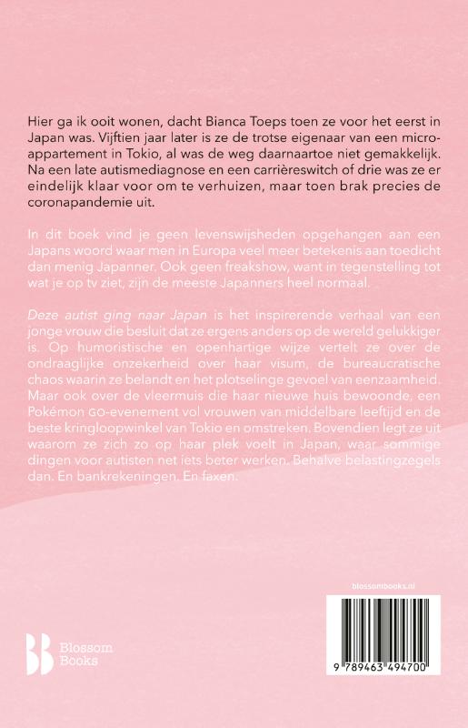 'Mijn "ik kan alles zelf"-mentaliteit heeft ook zo z'n nadelen, want bij het aanvragen van een visum kun je nu eenmaal niet alles zelf. Dus ik waagde me in een nieuw domein: het domein van uitbesteden. Niet in de laatste plaats omdat mijn Japans zich op dat moment beperkte tot het bestellen van een Matcha Tea Latte.' Toen Bianca Toeps in 2008 voor het eerst in Japan was, wist ze het al: 'Hier ga ik ooit wonen.' Sinds kort heeft ze eindelijk haar micro-appartementje in Tokio, maar dat ging niet zonder slag of stoot. In dit boek vind je geen levenswijsheden, opgehangen aan een Japans woord waar men in het Westen veel meer betekenis aan toedicht dan menig Japanner. Ook geen freakshow, want in tegenstelling tot wat je op tv ziet, zijn de meeste Japanners heel normaal. Wat dan wel? 'Deze autist ging naar Japan' is het inspirerende verhaal van een vrouw die op humoristische wijze vertelt over een verhuizing naar de andere kant van de wereld - naar een plek waar sommige dingen voor autisten misschien net iets beter werken. Behalve belastingzegels dan. En bankrekeningen. En faxen. Auteur Bianca Toeps schreef eerder 'Maar je ziet er helemaal niet autistisch uit', waarin ze uitlegt wat het betekent om autisme te hebben.