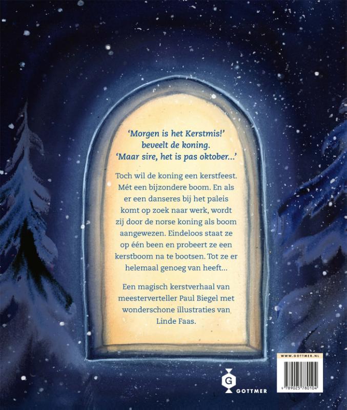 Nu voor het eerst als prentenboek uitgegeven: 'Een kerstdans voor de koning' van Paul Biegel. Een prachtige kerstverhaal van de meesterverteller, met sprookjesachtige beelden van Linde Faas, om voor te lezen vanaf 4 jaar. 'Morgen is het Kerstmis!' beval de koning. 'Maar sire, het is pas oktober...' Maar deze koning wenst een kerstfeest. Mét een bijzondere boom. Als er een danseresje bij het paleis komt, op zoek naar werk, wordt zij door de norse koning als boom aangewezen. Eindeloos staat ze, opgetuigd met kerstballen en slingers, op één been en ze mag zich niet verroeren. Tot ze er genoeg van heeft en de lastige koning met een wervelende dans in een kerstshock achterlaat. Het magische kerstverhaal 'Een kerstdans voor de koning' komt opnieuw tot leven in de sprankelende illustraties van Linde Faas, die de lezer direct onderdompelen in Biegeliaanse sferen.