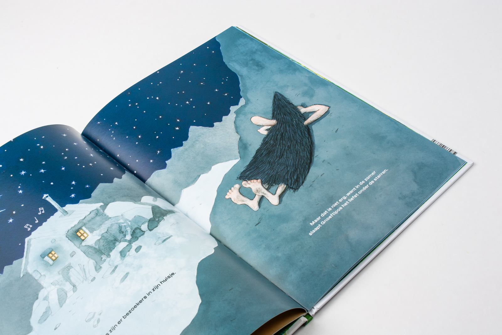Gnoeftipoe wordt wakker uit zijn winterslaap. Eindelijk weer tijd om rustig te wandelen, te genieten van het mooie uitzicht en te zwaaien naar toevallige voorbijgangers - al merken die hem vaak niet eens op. En als ze hem tóch zien, maken ze zich meestal snel uit de voeten … Wanneer de sneeuwvlokjes beginnen te vallen, is het tijd voor de grote tocht. Gnoeftipoe doet dan zijn mooiste kleren aan en daalt de berg af. Lopen de mensen nog steeds weg?