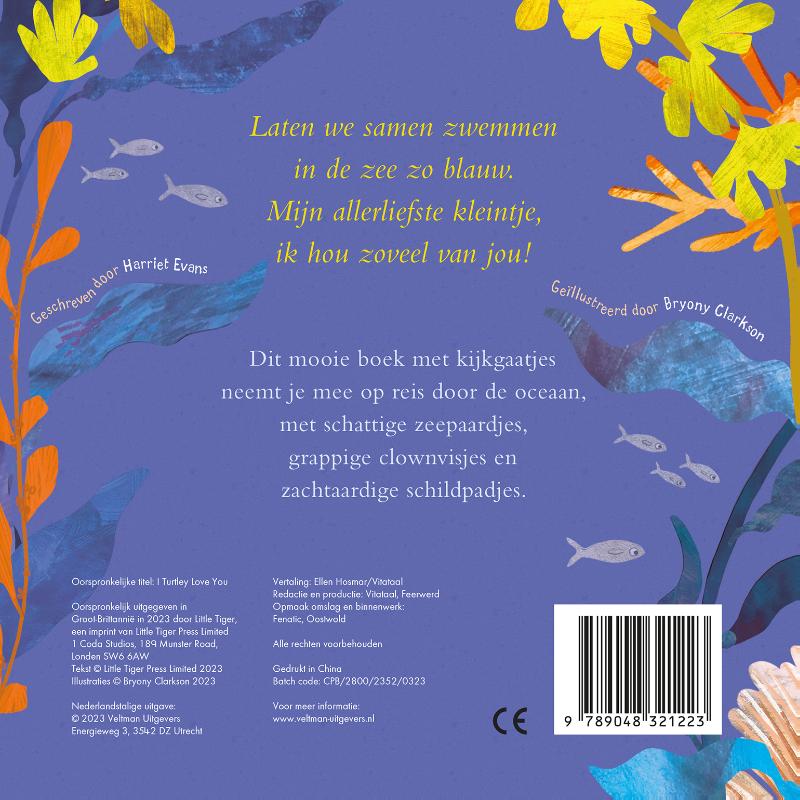 Laten we samen zwemmen in de zee zo blauw. Mijn allerliefste kleintje, ik hou zoveel van jou! Dit mooie boek met kijkgaatjes neemt je mee op reis door de oceaan, met schattige zeepaardjes, grappige clownvisjes en zachtaardige schildpadjes.