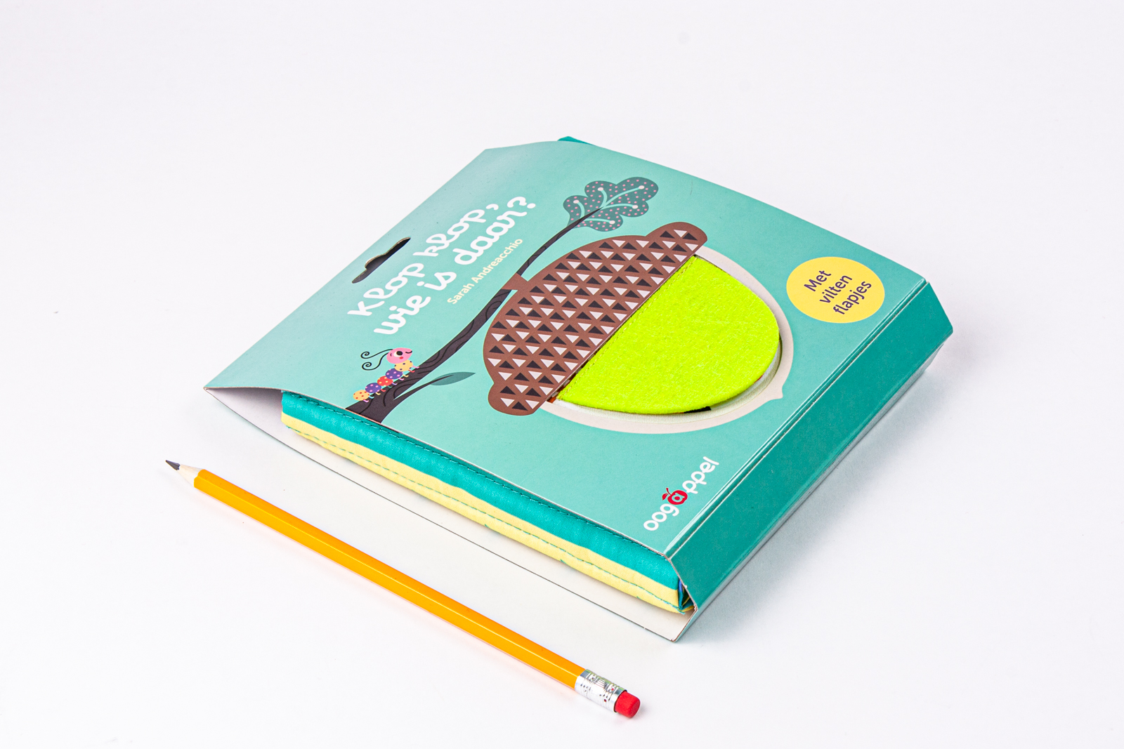 Wie zit er onder de flapjes verborgen? Mieren delen een maaltijd, een regenworm woont in een appel, een lieveheersbeestje viert feest in een struik... Kleine tafereeltjes poëtisch geïllustreerd door Sarah Andreacchio. Een stoffen boek met flapjes die je kan optillen om verrassende dieren te ontdekken!
