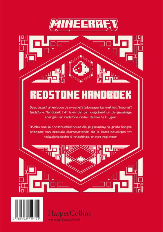 Met het Minecraft Redstone Handboek naast je terwijl je Minecraft speelt word jij de volgende redstone-expert. In dit handboek vind je alles wat je maar wilt weten over redstone en de manieren waarop je het kunt gebruiken. Van het minen ervan tot het maken van bouwwerken, circuits en geavanceerde mechanismen. Met de handige stap-voor-stapinstructies maak jij binnen een mum van tijd allerlei redstone-bouwwerken. Wat dacht je van een verborgen trappenhuis, een inbraakalarm of mechanische valstrikken om ongewenste bezoekers te weren? Tot slot krijg je ook nog eens tips van de beste redstone-creators van Minecraft en ontdek je hun waanzinnige creaties.