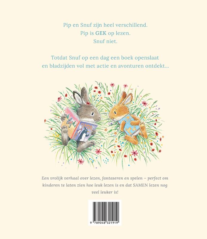 Pip en Snuf zijn heel verschillend. Pip is GEK op lezen. Snuf niet. Totdat Snuf op een dag een boek openslaat en bladzijden vol met actie en avonturen ontdekt... Een vrolijk verhaal over lezen, fantaseren en spelen – perfect om kinderen te laten zien hoe leuk lezen is en dat SAMEN lezen nog veel leuker is!
