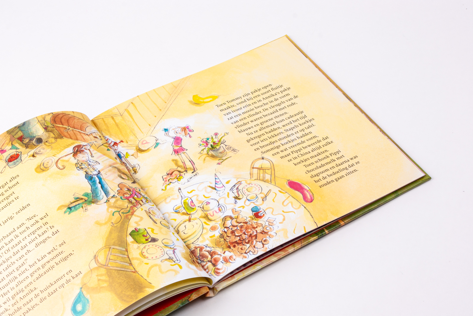 Een feestelijk prentenboek over Pippi Langkous, die haar verjaardag op haar eigenwijze manier viert. Tmmy en anika moggen op pippis ver jardag koomen. Morgenmiddag. Kleeren: wat je wil. Pippi heeft de hele nacht gezwoegd op deze uitnodiging, en ook al is hij wat vreemd gespeld, Tommy en Annika begrijpen precies wat er staat: feest! Een verjaardagsfeest van Pippi is natuurlijk geen gewoon verjaardagsfeest. Bij Pippi krijgen de gasten óók cadeautjes!
