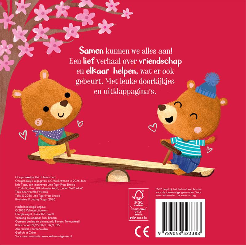 Samen kunnen we alles aan! Een lief verhaal over vriendschap en elkaar helpen, wat er ook gebeurt. Met leuke doorkijkjes en uitklappagina’s.