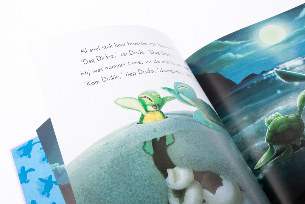 'Schiet op, schildpadjes' van het bekroonde duo Rachel Bright en Jim Field is een spannend prentenboek vol vaart over moed en keuzes maken. Het verhaal is een ode aan de kracht van samenwerken en bevat een subtiele boodschap over hoe zelfs het kleinste diertje het verschil kan maken.Op een pikdonker strand begint een spannende race: een groepje pasgeboren schildpadjes stormt richting zee, onder het toeziend oog van een juichende dierenmenigte. Dodo wil maar al te graag als eerste bij het water zijn. Maar dan raakt haar broertje verdwaald. Wat doet Dodo: rent ze door om als eerste de zee te bereiken of gaat ze haar verdwaalde broertje redden? Dodo's moedige keuze laat zien dat winnen niet altijd belangrijk is.Een belangrijke les in een kleurrijk jasje en op swingend rijm, dat is waar het bestsellerduo Rachel Bright en Jim Field in uitblinkt. De hoofdpersonen die ze over de hele wereld uit het dierenrijk plukken zijn nooit te beroerd om te leren en te groeien. Niet alleen in het VK, maar ook in Nederland en Vlaanderen wordt het talent van Bright & Field herkend en wordt ieder boek enthousiast onthaald. 'Twee vechtende eekhoorntjes', 'De leeuw in de muis' en 'Lars de dwarse dromedaris' prijken al jaren bovenaan de lijstjes met bestverkochte kinderboeken. De prentenboeken van Bright & Field zijn speels op rijm vertaald door Bette Westera en zijn leuk om voor te lezen aan kinderen vanaf ongeveer 3 of 4 jaar.