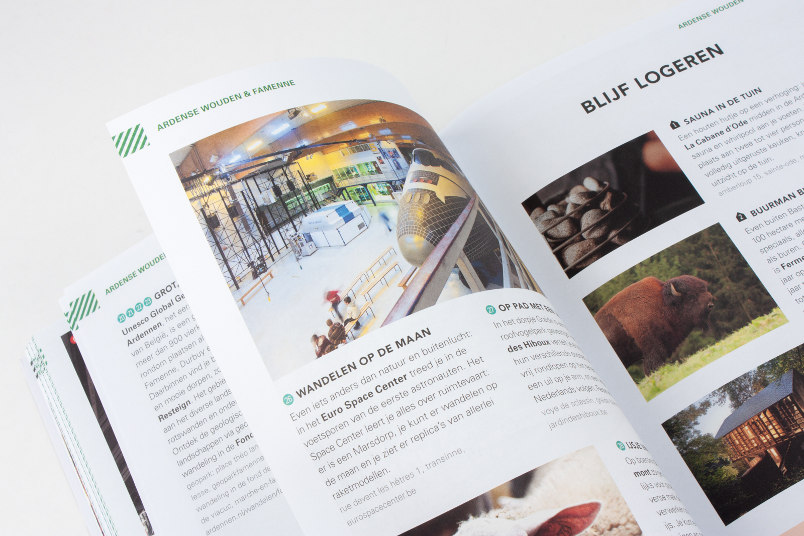 NATUUR & AVONTUUR, KASTELEN & ABDIJEN, MUSEA & GROTTEN, BIER & KAAS Vergeet die vakantie ver weg, plan een trip naar de Ardennen. Een actief en avontuurlijk deel van België, precies tussen Frankrijk, Duitsland en Nederland in. Hier trek je eropuit naar mooie uitzichtpunten, naar natuurparken vol vlonderpaden en naar historische hotspots. Wandel over steile paden of fiets over oude spoorlijnen, bezoek sfeervolle stadjes en dorpen, en drink er lokaal gebrouwen bier. Bestel ’s avonds vers gevangen forel en spot de dag erna de Europese Big Five. De meer dan driehonderd adressen in deze gids laten je zien dat niet ver van huis hoeft om te er even helemaal uit te zijn.