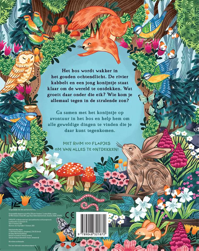 Het bos wordt wakker in het gouden ochtendlicht. De rivier kabbelt en een jong konijntje staat klaar om de wereld te ontdekken. Wat groeit daar onder die eik? Wie kom je allemaal tegen in de stralende zon? Ga samen met het konijntje op avontuur in het bos en help hem om alle geweldige dingen te vinden die je daar kunt tegenkomen. Met ruim 100 flapjes om van alles te ontdekken!